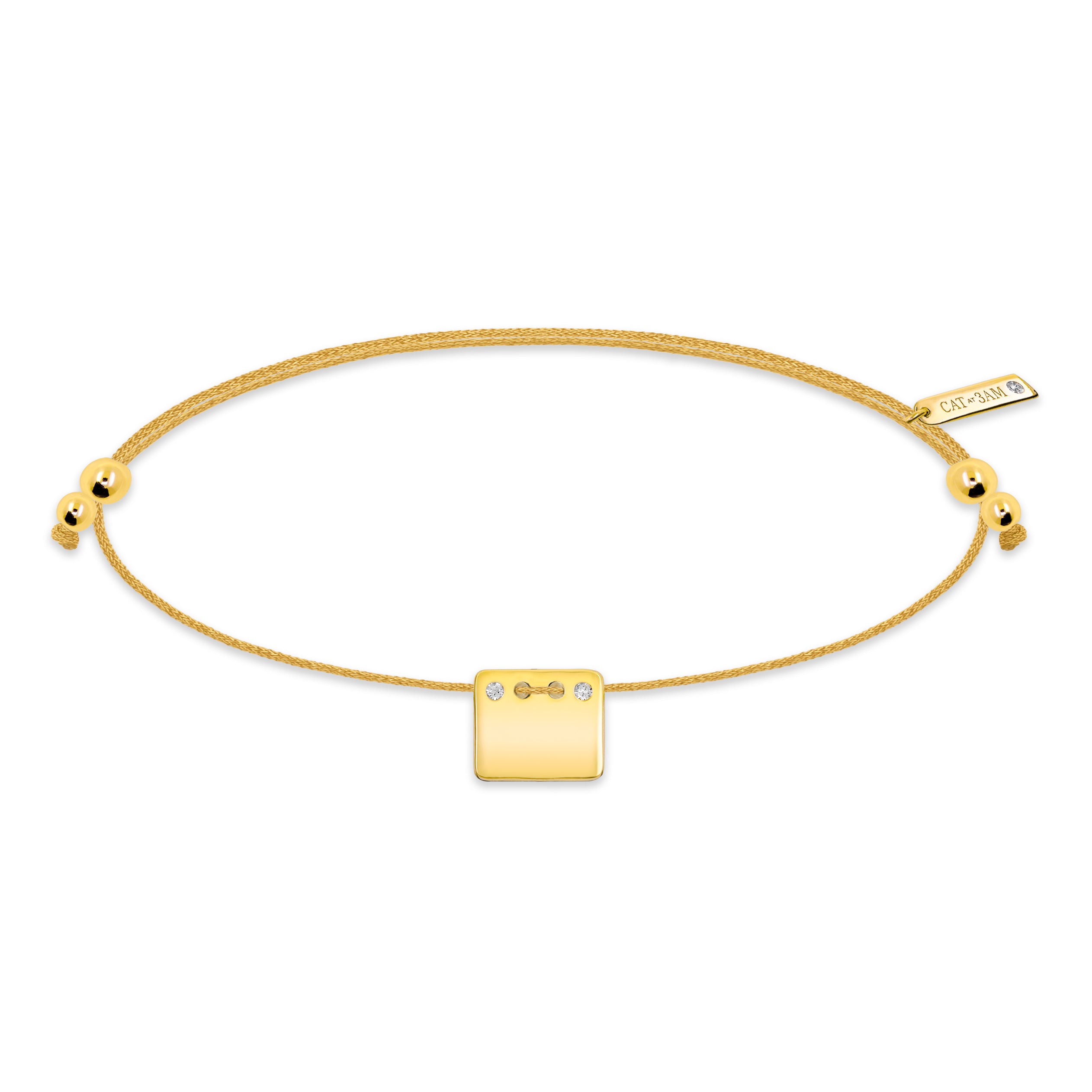 ブレスレットの端にあるコードは、ポジショニングビーズを動かすことで隠すことができます。手首にしっかりフィットするので、着け心地がよく、フレキシブルです。また、他のブレスレットとの重ね付けも簡単です。